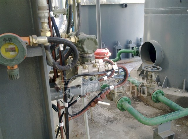 壓力變送器液位計常應氣候溫度過低,造成堵塞現象,需要電伴熱防凍,渝豐化工要求其冬季維持溫度為5--10℃,并且要求電伴熱帶具有防爆防腐功能。安徽環瑞提供ZRDHR-PF46滿足客戶對使用場合及維持溫度要求,其最高表面溫度為70℃,耐溫可達200℃??杀WC維持溫度的情況下,不會出現溫度過高的情況,更加經濟安全,而針對現場細長狹窄的地方自限溫電熱帶可實現交叉纏繞,解決局部伴熱的問題。以下為現場施工安裝圖: