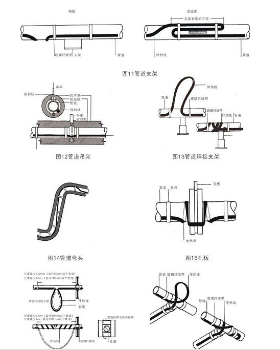 電熱帶安裝時(shí)應(yīng)注意,保證電熱帶芯帶最大接觸面積緊貼附件。切勿扭折,保證熱傳遞正常。以上安裝可以通過鋁箔膠帶增大受熱面積,確保伴熱效果。以下為附件安裝示意圖: