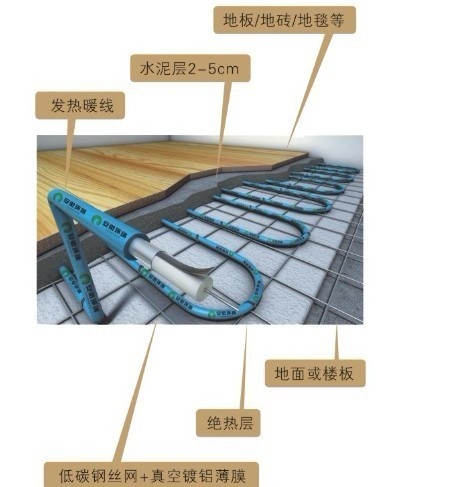 發(fā)熱電纜電地暖系統(tǒng)由發(fā)熱電纜和溫控器兩部分組成,發(fā)熱電纜鋪設(shè)于地面中,溫控器安裝于墻面上。當(dāng)室內(nèi)環(huán)境溫度或地面溫度低于溫控器設(shè)定的溫度時(shí),溫控器接通電源,發(fā)熱電纜通電后開始發(fā)熱升溫,發(fā)出的熱量被覆蓋著的水泥層吸收,然后均勻地加熱室內(nèi)空氣,還有一部分熱量以遠(yuǎn)紅外輻射的方式直接釋放到室內(nèi)。該種方式的采暖系統(tǒng)把整個(gè)地面作為散熱器,室內(nèi)溫度上層低而下層高,有溫足而頂涼的感受,使您感到舒適而自然。