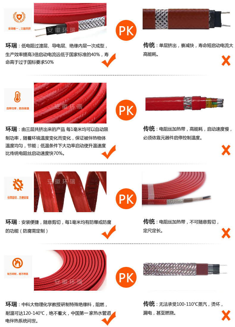 環(huán)瑞新型電伴熱帶和傳統(tǒng)電伴熱帶比較