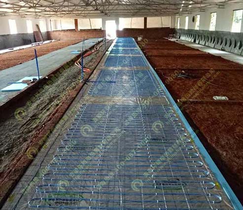 發熱電纜養殖保溫系統是將220V電源連接埋置在混凝土中的發熱電纜,發熱電纜發熱,將熱量傳至混凝土中并儲熱,然后熱量由混凝土通過熱輻射的形式向上緩慢均勻釋放,從而達到下暖上涼采暖效果。