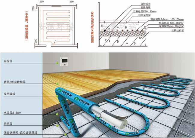 發熱的負荷不夠室內外的溫差熱損失,發熱電纜系統是間歇性工作的,如果功率配置低,系統要很長的時間,才能達到設定的溫度,這樣不僅發熱電纜系統不熱,而且耗電量也比較大。